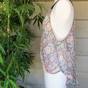 ASTR Neon Geometric Print Sheer Hi Lo Racerback Black Strap Tank Top