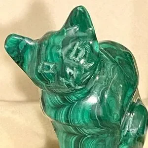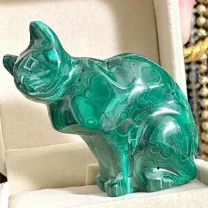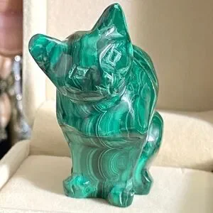 Natural Green Malachite Hand Carved Cat Gemstone Decor