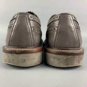 FOOT THE COACHER shoes in a grey perforated leather featuring a cap toe, wooden sole, and a lace up closure. Made in Japan.