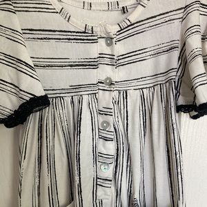 Jessica Simpson Black And White Jumpsuit. Purchased and never used because my daughter was potty trained. It’s super soft and comfortable. The buttons on the front help with on and off. Buttons inside of the legs allows easy changes. Size 2T