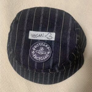 Stylish Vivienne Westwood hat with intricate black patterns on a gray background. Perfect for adding a touch of elegance to any outfit.