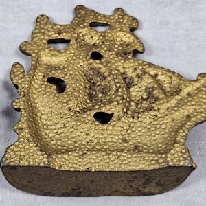 Vintage Brass Ship Nautical Bookend Pair Embossed "501" 4.25"H 4.5"L Metal Decor