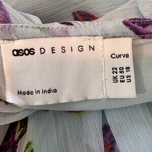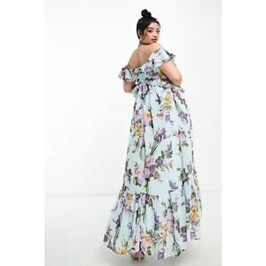 NWT ASOS Curve Ruffle Cut Out High Low Off Shoulder Floral Maxi | Blue | SZ 18