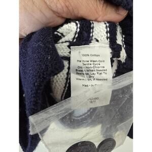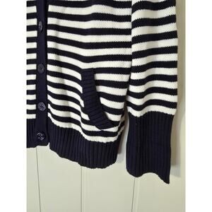 Talbots Nautical Stripe Cardigan Sweater Navy Blue Buttons Cotton NWOT Size M