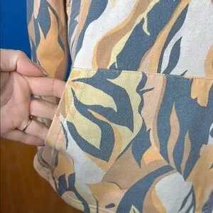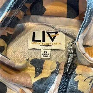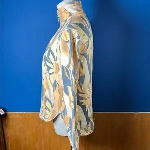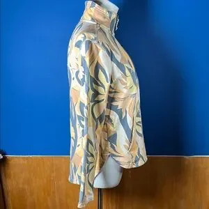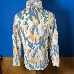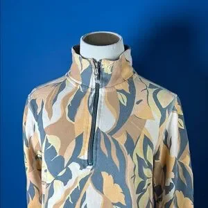 Stylish floral quarter-zip pullover with a vibrant design. Features a mix of orange, blue grey and cream colors. Liv outdoor pullover size small in good used condition.