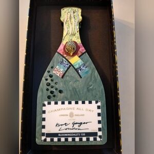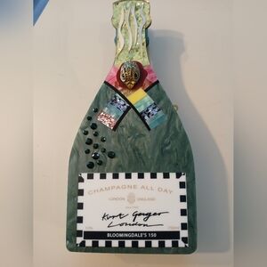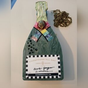 EXTREMELY RARE Kurt Geiger Collectable Champage Bag. this comes in the 150 year Bloomingdale box. it's never been used. the champage bottle is 9 inches long and can be carried as a clutch or a crossbody with the detachable gold chain that is 24 inches long. it has swavorkski crystals thru out and very colorful. this is beautiful and a piece that will go up in value for sure. non smoking home offers welcome
