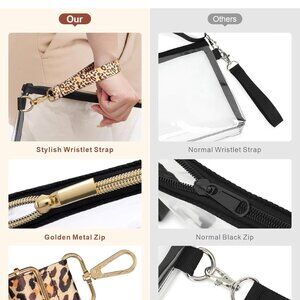 Stadium-ready clear design: Glide through security checks at Sports games or concerts with our clear wristlet purses for women measuring 9.4" L x 1.6" W x 7.5" H ; The see-through PVC stadium purse your style while keeping essentials visible for hassle-free entry; Perfect as a clear concert bag or cute clear purse for women