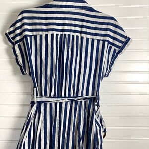 Zara Midi Stripe Dress Linen &Cotton Blend Shirt Tunic Midi With Belt BlueWhite Size Small
