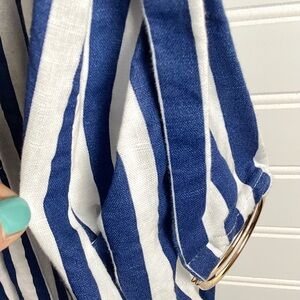 Zara Midi Stripe Dress Linen Shirt Tunic Midi With Belt BlueWhite Size Small