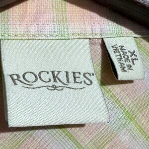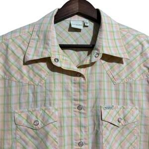 Rockies pink and green plaid short sleeve pearl snap top - women's XL