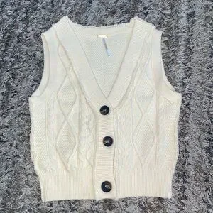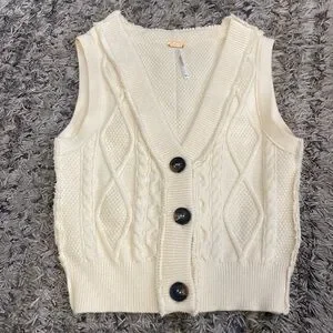 FREE PEOPLE Denson Cream Cable Knit Button-Up sweater vest OB1271731 sz XS