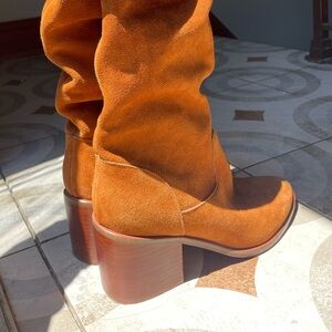 Worn once!!! Step out in style with these elegant chestnut brown suede knee-high boots. Perfect for any occasion, they offer both comfort and sophistication.