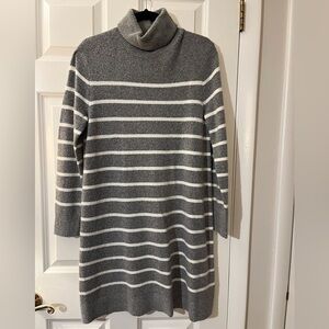 J. Crew Sweater Dress Gray and White Striped Turtleneck