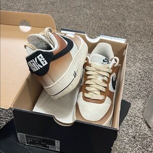 Nike Brown and White Sneakers Versatile Low-Top Design slightly worn