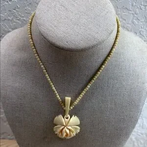 Elegant Cream Necklace with Floral Pendant ivory vintage