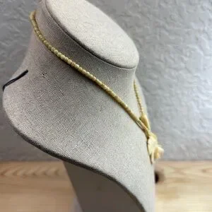 This elegant cream necklace features a beautiful floral pendant, perfect for adding a touch of sophistication to any outfit.