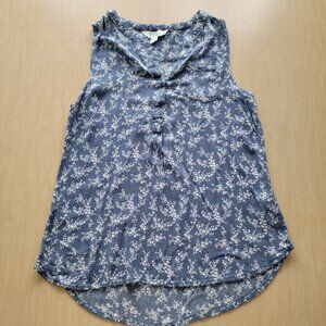 Very good condition, pretty grayish-blue floral pattern sleeveless top with 3 button front and pocket.