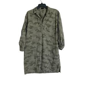 ATM Stretch Cotton Collared Shirt Dress Sage Camo Size Medium Casual