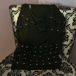 This stylish black tank top from ROMWE features eye-catching silver embellishments across the front. Crafted from a soft, stretchy fabric, it offers a comfortable fit with a touch of edgy flair. Perfect for adding a rock-inspired vibe to your wardrobe.