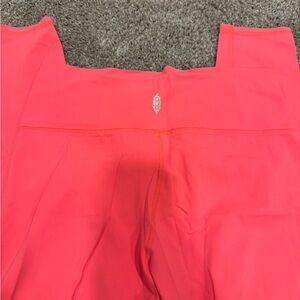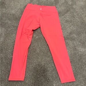 Stylish coral high-waisted leggings. Perfect for workouts or casual wear.
