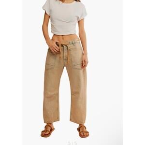 We The Free Moxie Low Slung Barrel Jeans | Size 25 | Pull-On Rope Waist | Distre