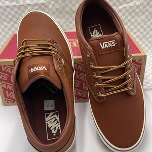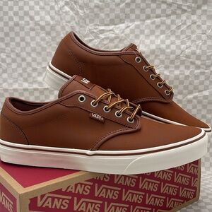 New in the box authentic Vans Men’s Brown Leather Sneakers with White Accents Atwood (Leather)Brown/Mashmallow