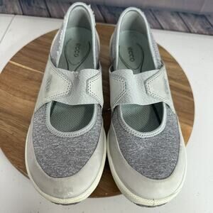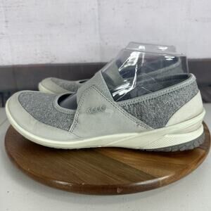 Ecco Mary Jane Shoe Womens 7 Gray Comfort Cushion Biom Flat Slip on Leather