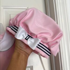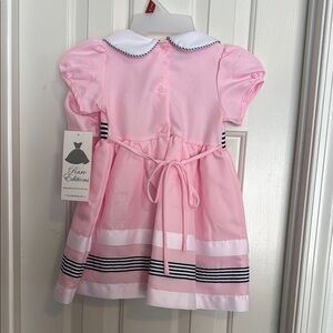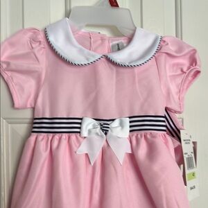 Rare Editions Pink Dress with Navy Striped Accents and Bow with matching hat