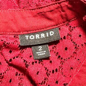 Torrid Womens Lace Blouse High Neck In Rhubarb Red Size 2 (2X) Whimsy