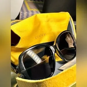These Gucci sunglasses feature a sleek black frame and a classic square design, perfect for adding a touch of elegance to any outfit. The high-quality lenses provide excellent UV protection, ensuring both style and safety. Ideal for any occasion, these sunglasses are a must-have accessory for the fashion-forward individual.