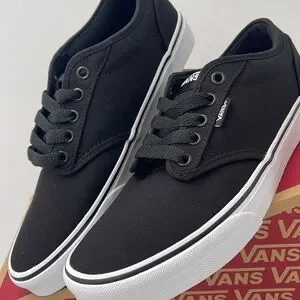 New in the box authentic Vans Men’s Black Canvas Sneakers Classic Low-Top Design Atwood (Canvas) Black/White