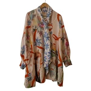 ANTHROPOLOGIE x MAEVE Fox & Bird Print Tie Neck Mini Dress - Size Medium