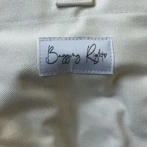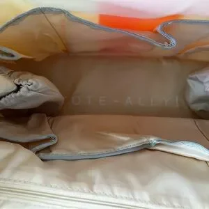 white tote bag featuring vibrant pink and orange accents. Perfect for any occasion, this bag combines fashion and functionality.