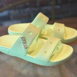 Step into comfort with these vibrant yellow CROCS slippers, designed for easy slip-on convenience. Crafted from a lightweight, waterproof material, they feature a molded footbed for added support and comfort. Perfect for casual outings or relaxing at home, these slippers offer a simple yet stylish look.