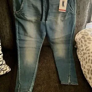 Experience the perfect blend of style and comfort with Signature by Levi Strauss & Co. Women's Lounge Joggers. These jeans feature a classic denim style with a medium to light wash, showcasing natural fading and whiskering patterns. The distressed appearance and tapered fit offer a modern, lived-in look ideal for any casual occasion.