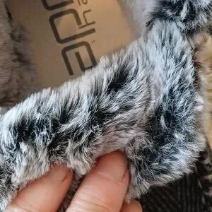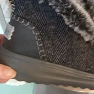 brand new hey dude size 7 slip-ons outside is black and slate gray Tweed inside black and silver faux fur easy to slip on and off bottom sole very rugged slip resistant no box
