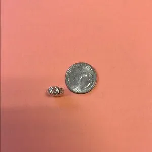 Elegant silver circular charm with a sparkling heart cutout design. Perfect for adding a touch of shine to any accessory.