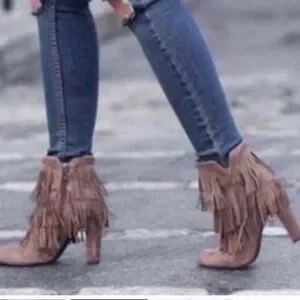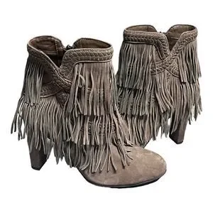 Women’s SAM EDELMAN Kaleb Taupe HEELED FRINGE Bootie Size 8
