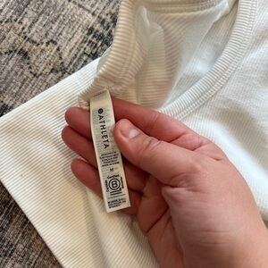 EUC Athleta women’s Aurora cropped ribbed polo tank top size medium. This tank is so cute! White, ribbed thick performance material with amazing seamless stretch. Perfect to dress up or down for athleisure! Check photos for measurements in inches!
