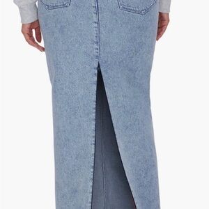 This faded denim skirt is crafted in a longline silhouette with an airy back vent for movement.