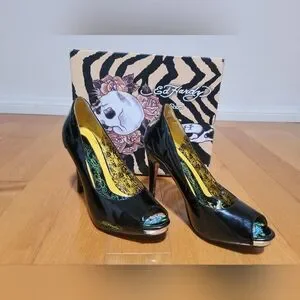 Ed Hardy "Stacey" Black High Heel Peep Toe Shoes