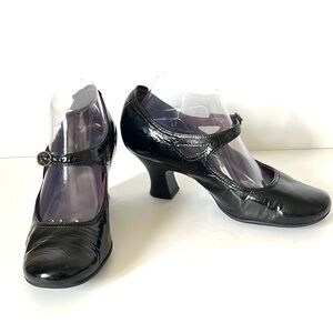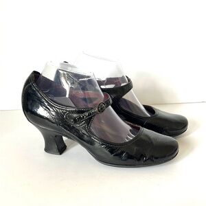 Clarks Indigo Black Patent Leather Mary Jane Pumps Heels Shoe Retro Size 9M