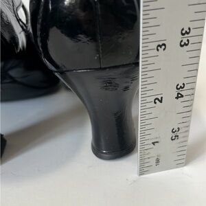 Step out in style with these elegant retro black patent Mary Jane heels by Clarks.