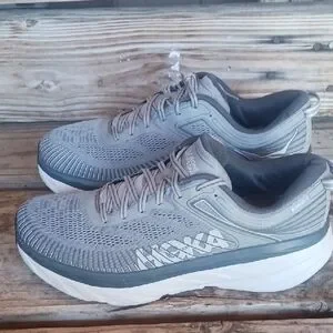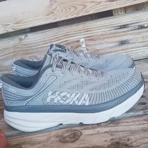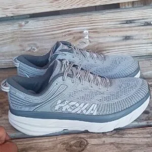 Hoka Bondi 7 Gray and White Athletic Shoes with Maximalist Cushioning