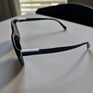 designer sunglasses with matching case by Prada. frames are in great condition with little signs of use. polarized lenses have small scratches that are barely noticeable. style SPR 08U 54□19 1AB - 110 145 3N