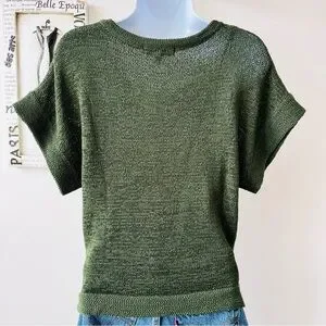 NWT WD•NY Green Short Sleeve Knit Pullover Sweater Size M