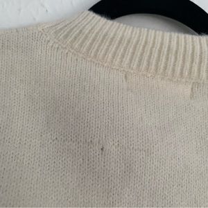 Charming cream cardigan with floral embroidery. Features button-up front. Perfect for layering.