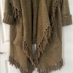 Kensie Olive Knit Cardigan with Fringe