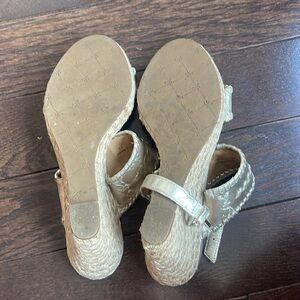 Used but in great condition. Jack Rogers wedges with gold and twine, size 8M