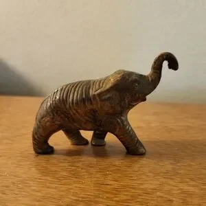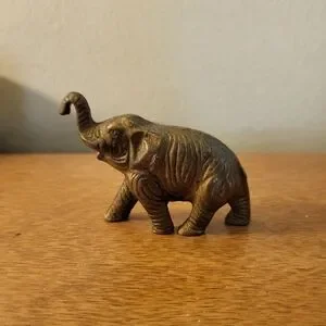 Add a touch of elegance to your home with this vintage brass elephant figurine. Its heavy, not lightweight. Trunk up for good luck! Measures 3" x 2".